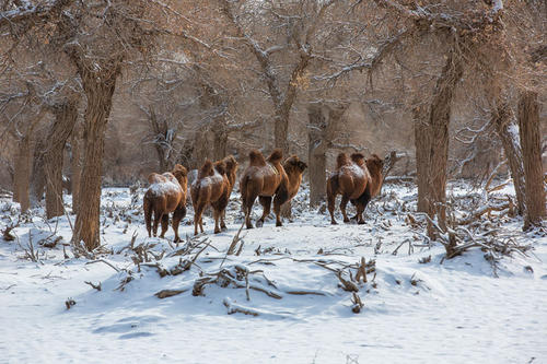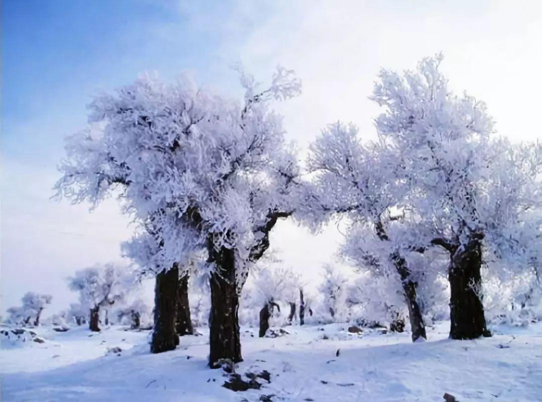 冬景驚艷:冬季冷空氣到來時會出現罕見的霧凇景觀,潔白的霧凇附著在千年胡楊樹上,玉樹瓊花,晶瑩剔透,宛如仙境。