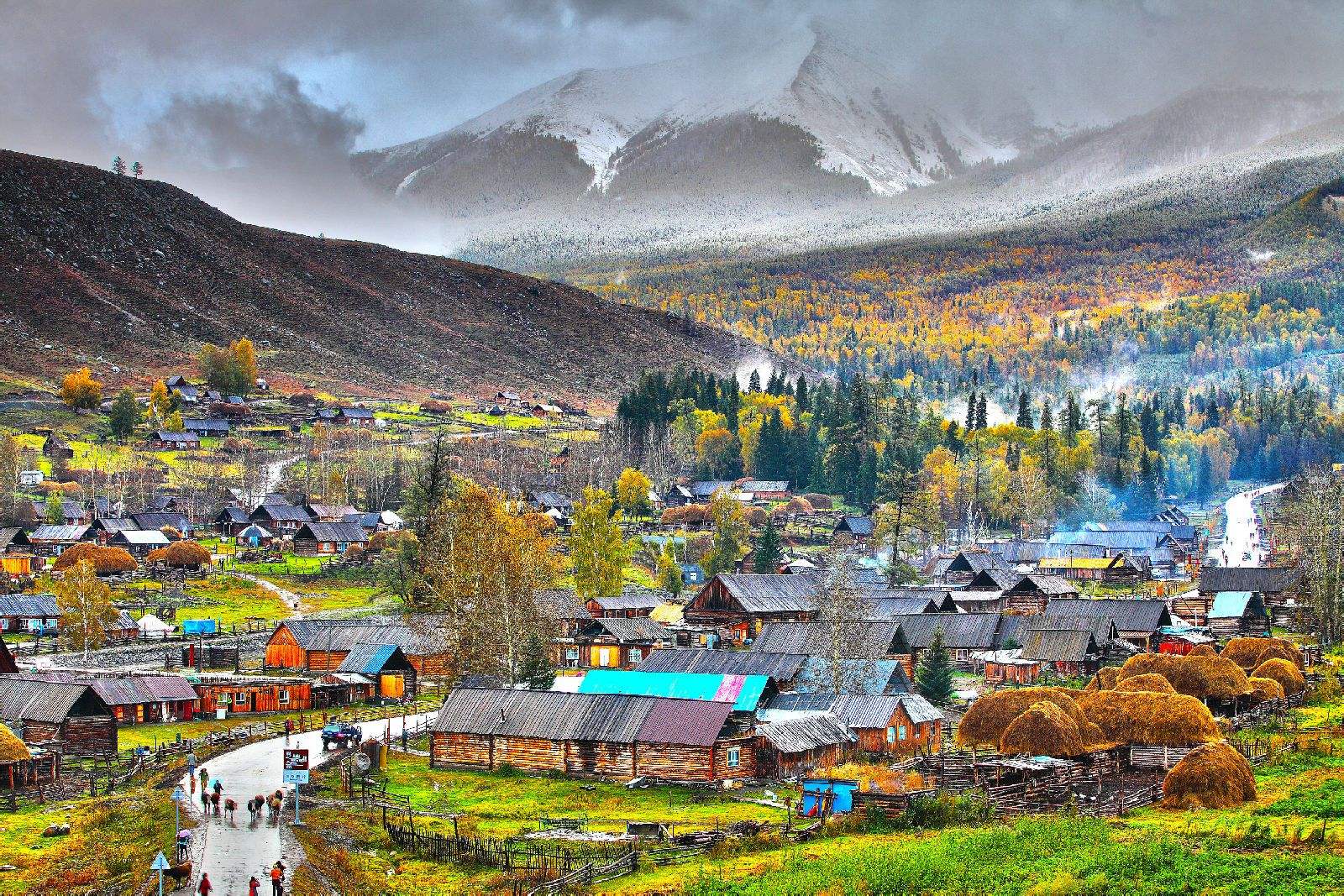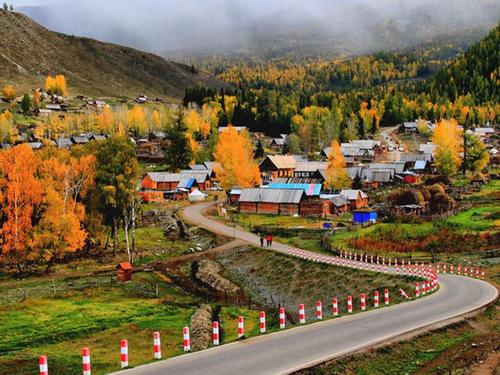 特色景觀:是保存最完整的圖瓦人居住村落,有著濃郁的圖瓦人風(fēng)情。村子坐落在溝谷中,尖頂木頭房子分布其中,金黃色樺樹、楊樹點(diǎn)綴,兩條清澈小河蜿蜒環(huán)村流過,秋季時(shí)五彩斑斕,與阿勒泰山皚皚雪峰相互映襯,宛如油畫。?
